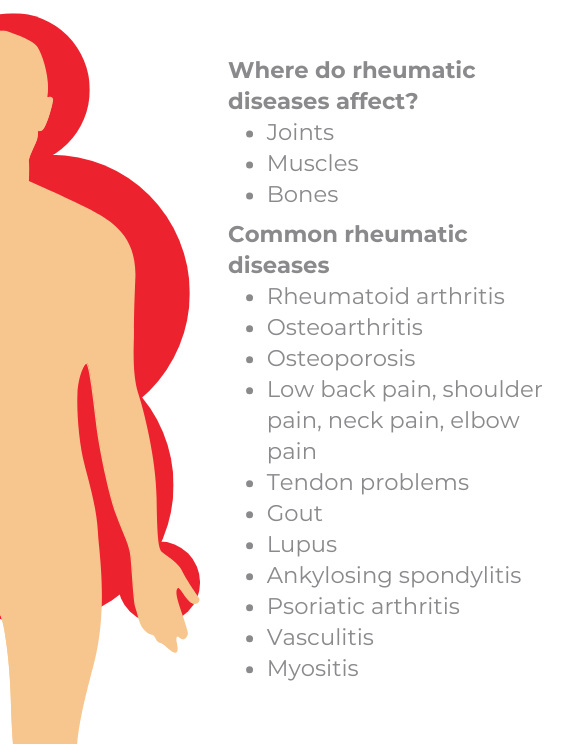 Rheumatologists are often requested to give their medical opinion on all conditions related to diseases that affect the joints, muscles, and bones. These conditions include but aren’t limited to: